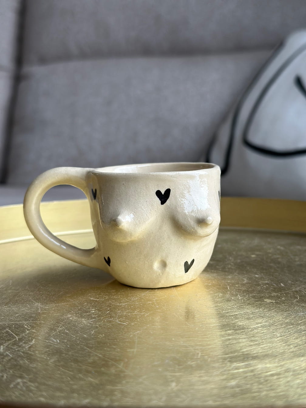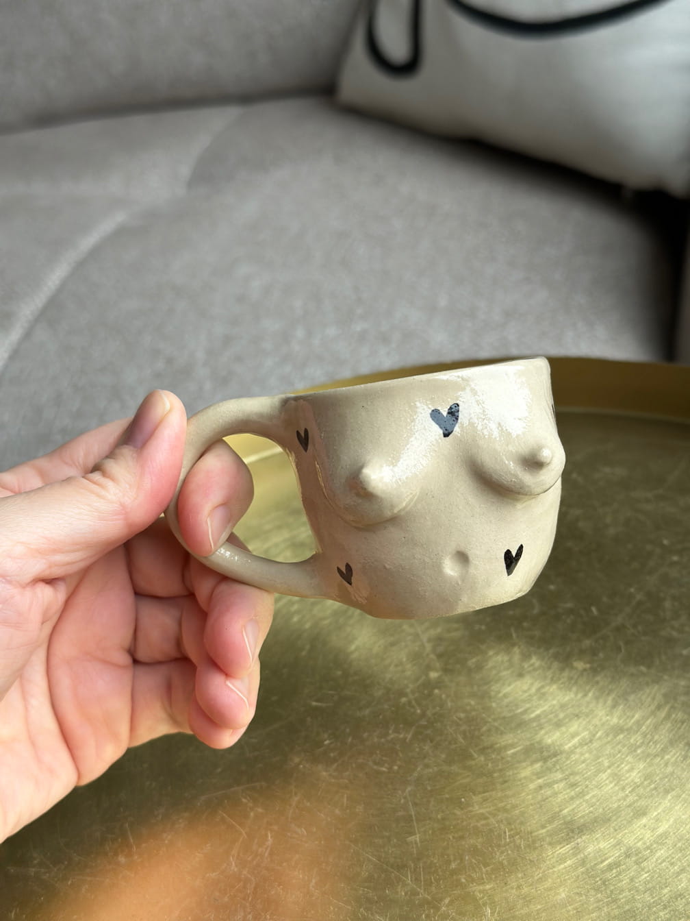Kubki i filiżanki z cycuszkami lepię ręcznie metodą pinch pot, co sprawia, że każdy z nich jest inny, nie pozbawiony drobnych niedoskonałości, ale dzięki temu bardzo naturalny, w duchu body positive.