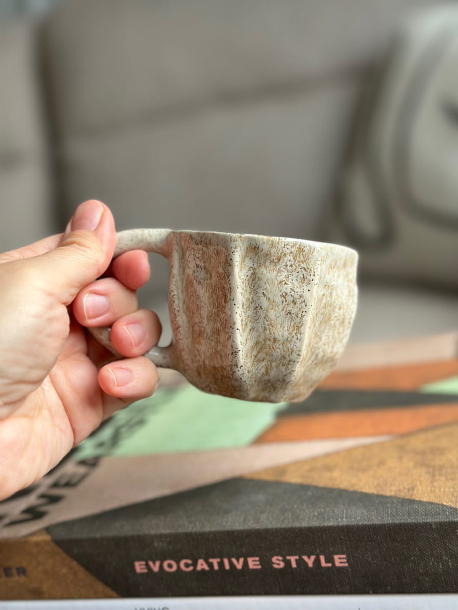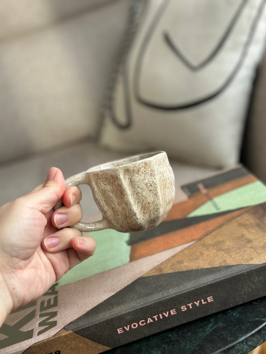 Utrzymany w organicznej estetyce kubeczek będzie nie tylko nietypowym naczyniem do picia ulubionej kawy czy herbaty, ale również ciekawym dodatkiem do wnętrza!
