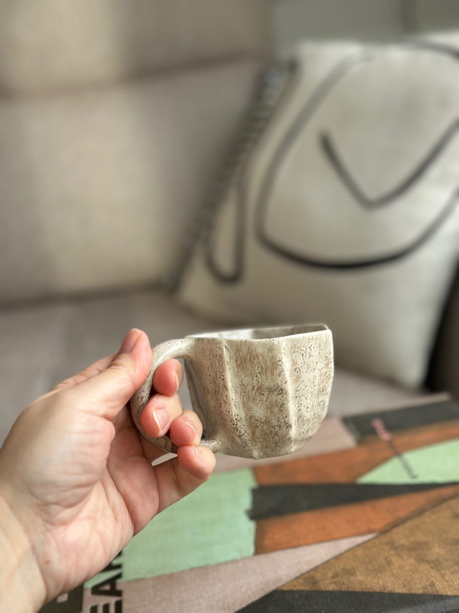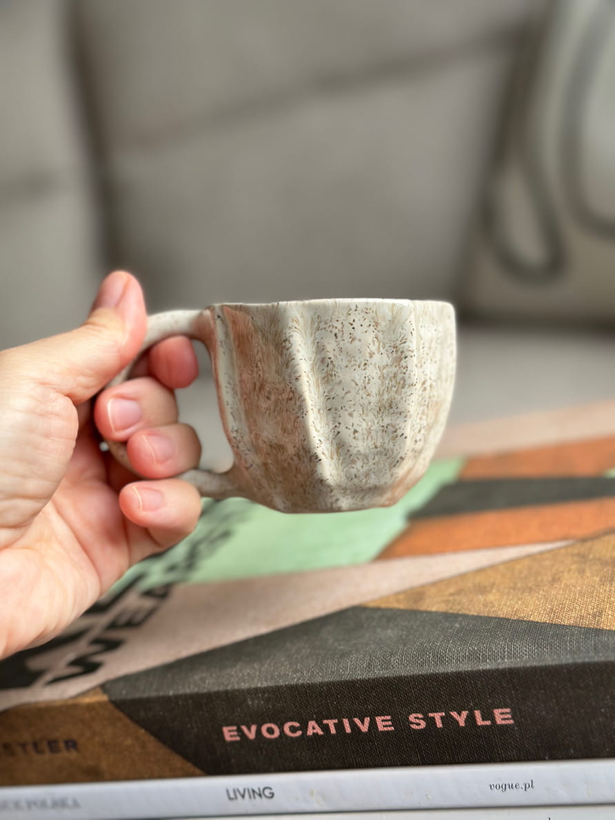 Utrzymany w organicznej estetyce kubeczek będzie nie tylko nietypowym naczyniem do picia ulubionej kawy czy herbaty, ale również ciekawym dodatkiem do wnętrza!