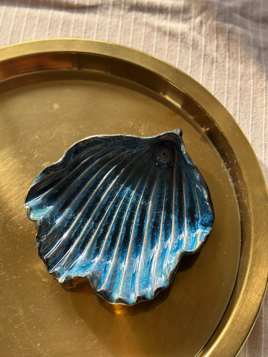 Podstawka na kadzidełko w kształcie muszli z perłą to w pełni ręcznie wykonany przedmiot, który nie dość, że doda uroku wnętrzu, w którym stanie, to przede wszystkim sprawdzi się idealnie do palenia wszystkich kadzideł.