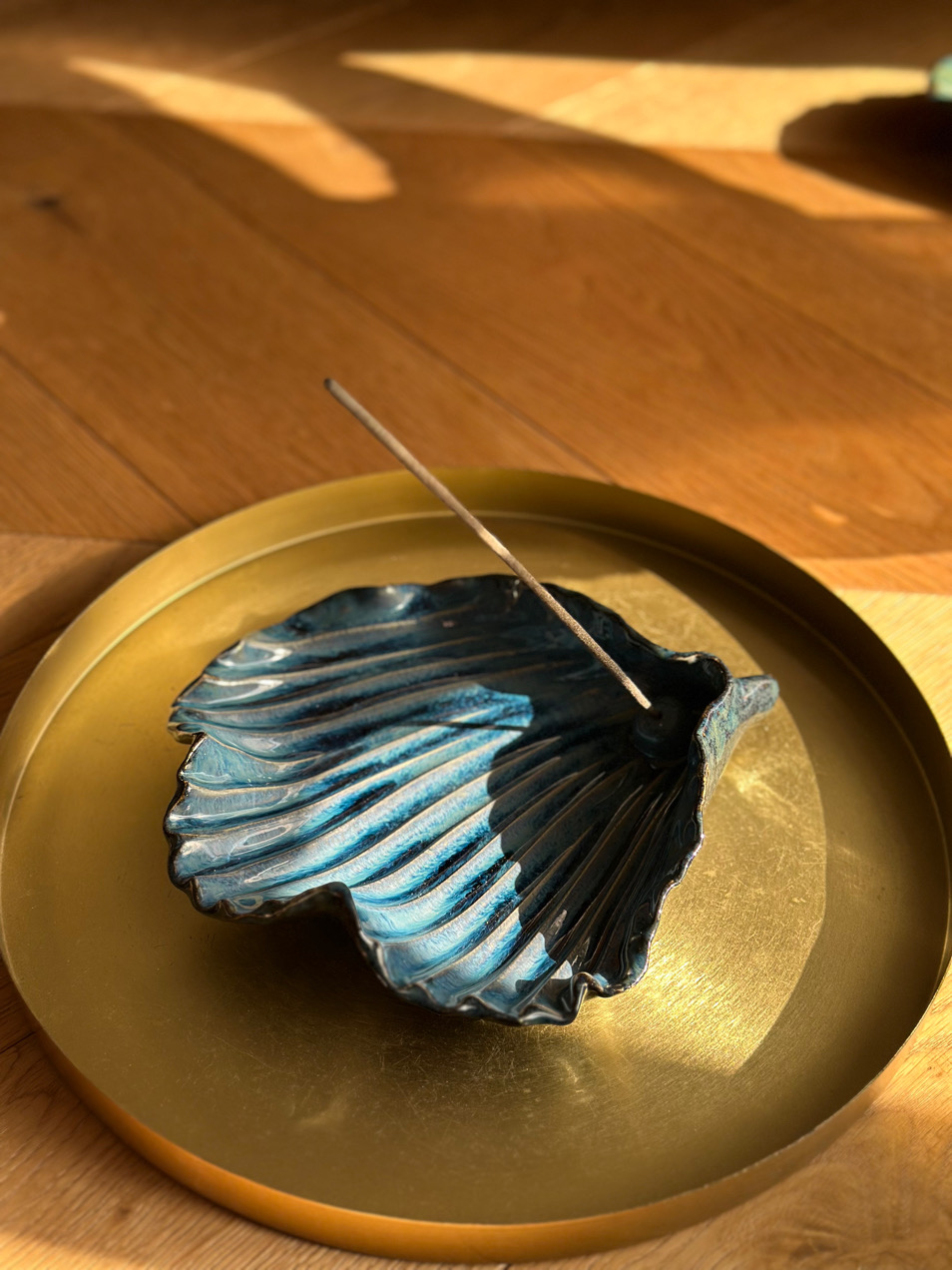 Podstawka na kadzidełko w kształcie muszli z perłą to w pełni ręcznie wykonany przedmiot, który nie dość, że doda uroku wnętrzu, w którym stanie, to przede wszystkim sprawdzi się idealnie do palenia wszystkich kadzideł.