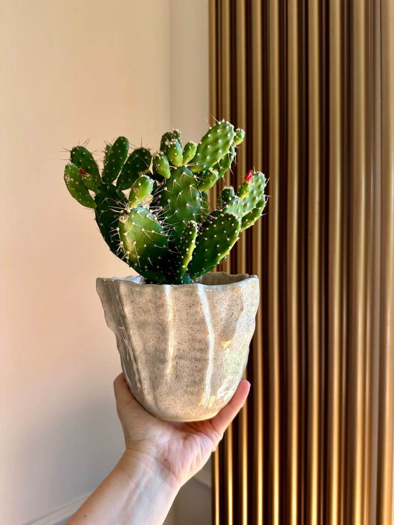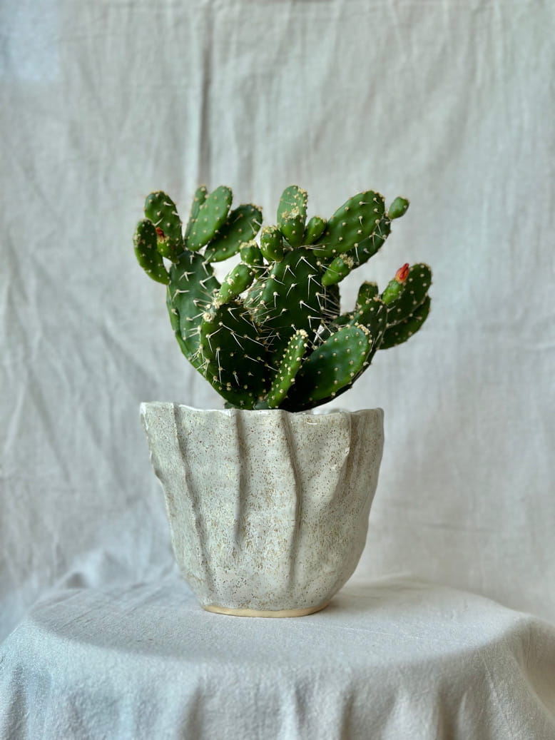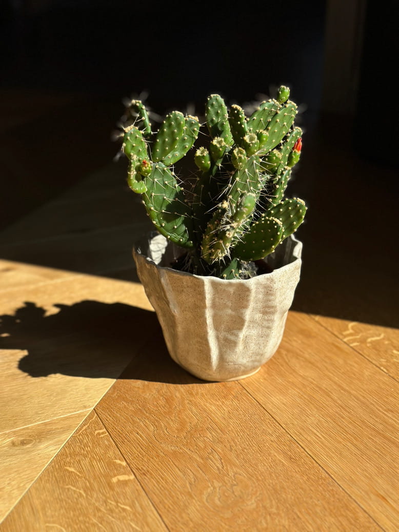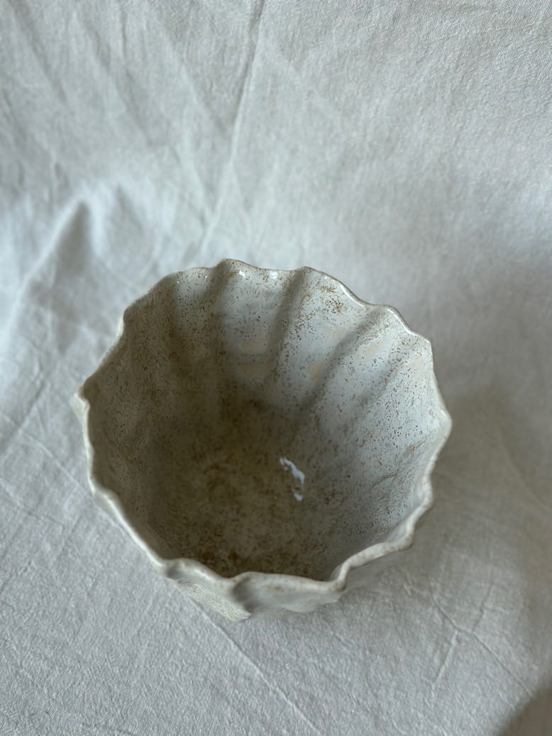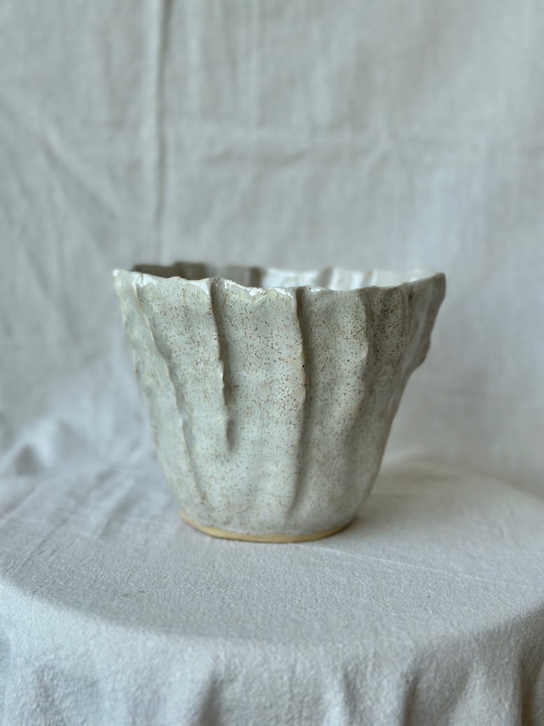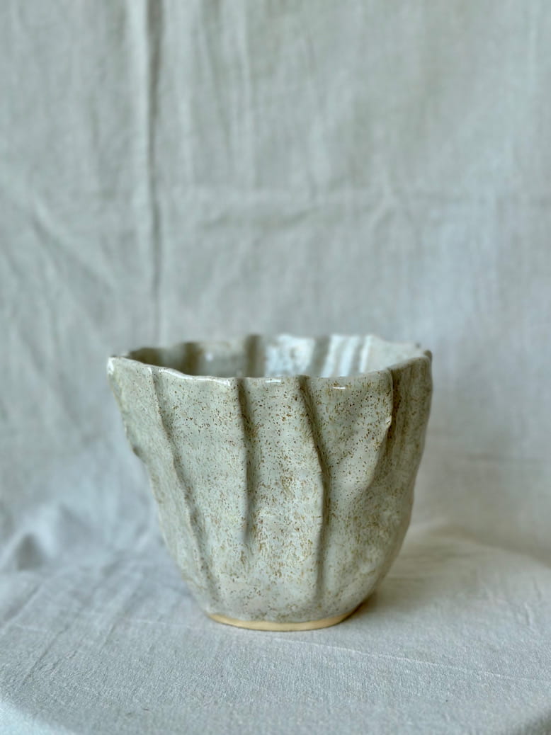 Osłonkę ulepiłam z jasnej gliny i poszkliwiłam piaskowym szkliwem, które pięknie podkreśla organiczny charakter ceramiki.