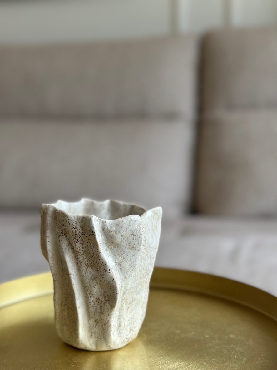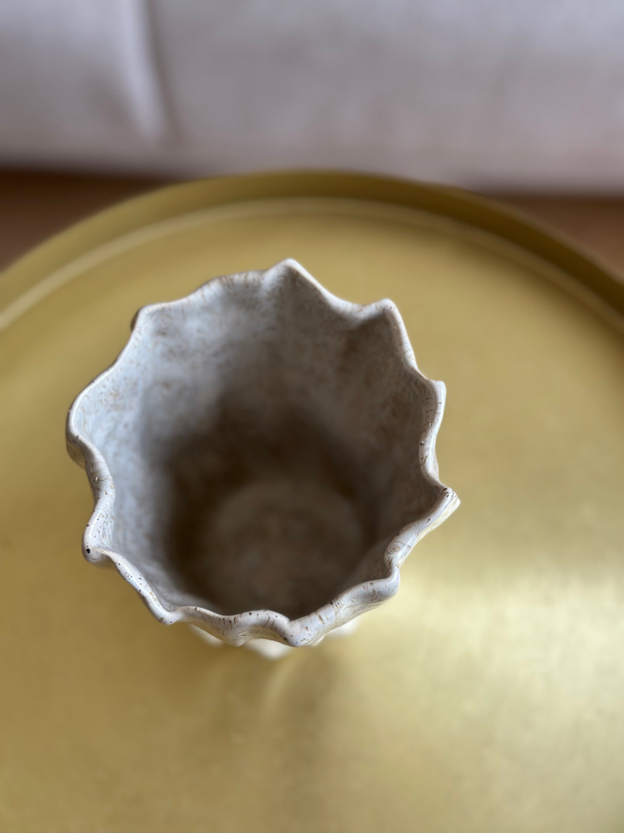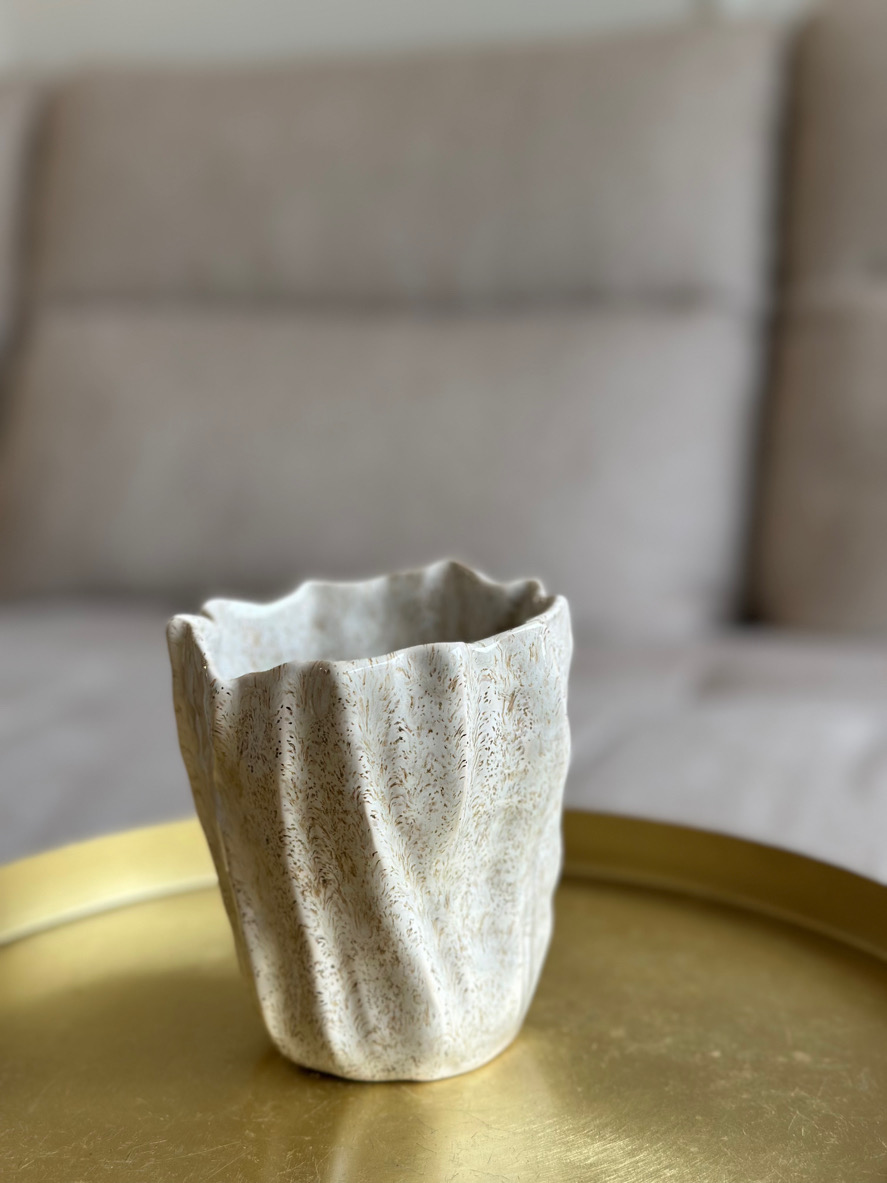 Pojemnik/ mały wazonik ulepiłam od początku do końca ręcznie, formując każdy detal z największą starannością. Dzięki temu każde z moich naczyń różni się od poprzedniego, na każdej sztuce widać ręczną pracę.