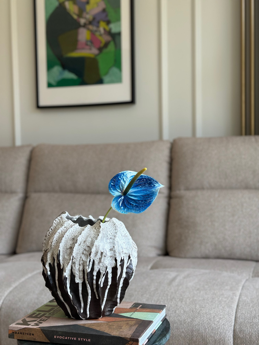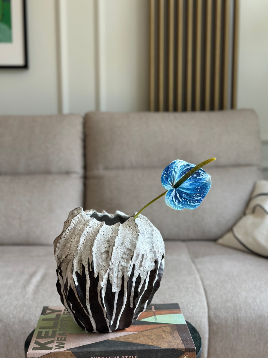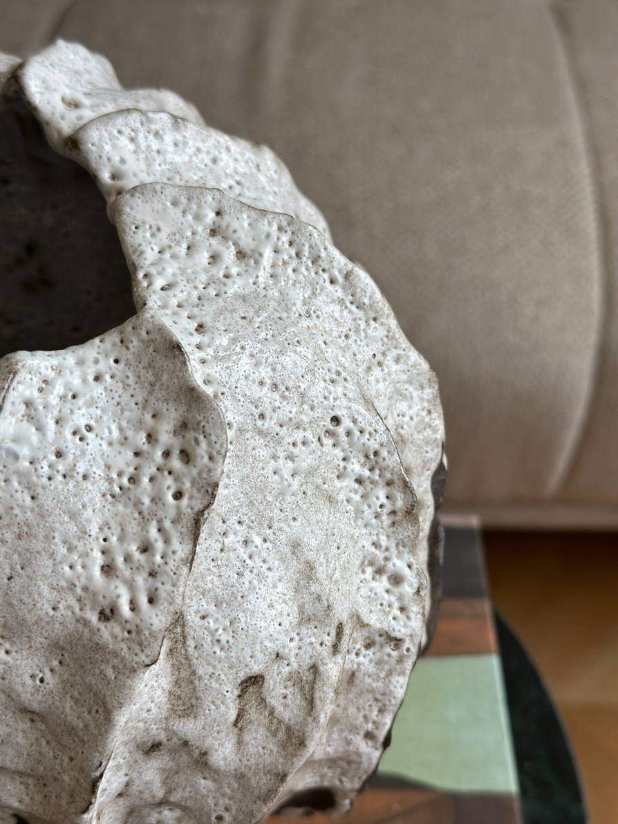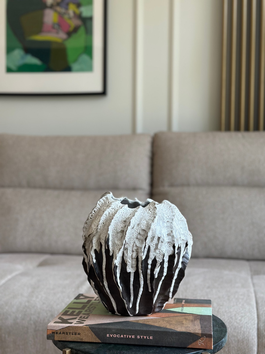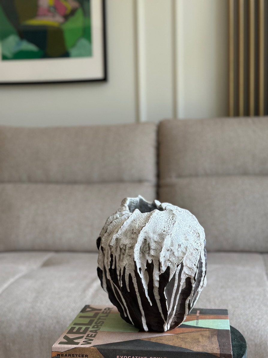 Ten ceramiczny wazon to gra pomiędzy naczyniem użytkowym, a rzeźbą. To próba przemycenia do dowolnego wnętrza odrobiny sztuki, ale w taki sposób, aby służyła ona w codziennym życiu.